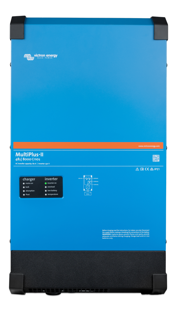 Le MultiPlus-II est l’élément clé d’un système ESS Victron car il offre la souplesse nécessaire lui permettant de s’associer aux chargeurs solaires MPPT ou aux convertisseurs PV rattachés au réseau. Pour découvrir des exemples et obtenir davantage de renseignements, consulter le manuel ESS.