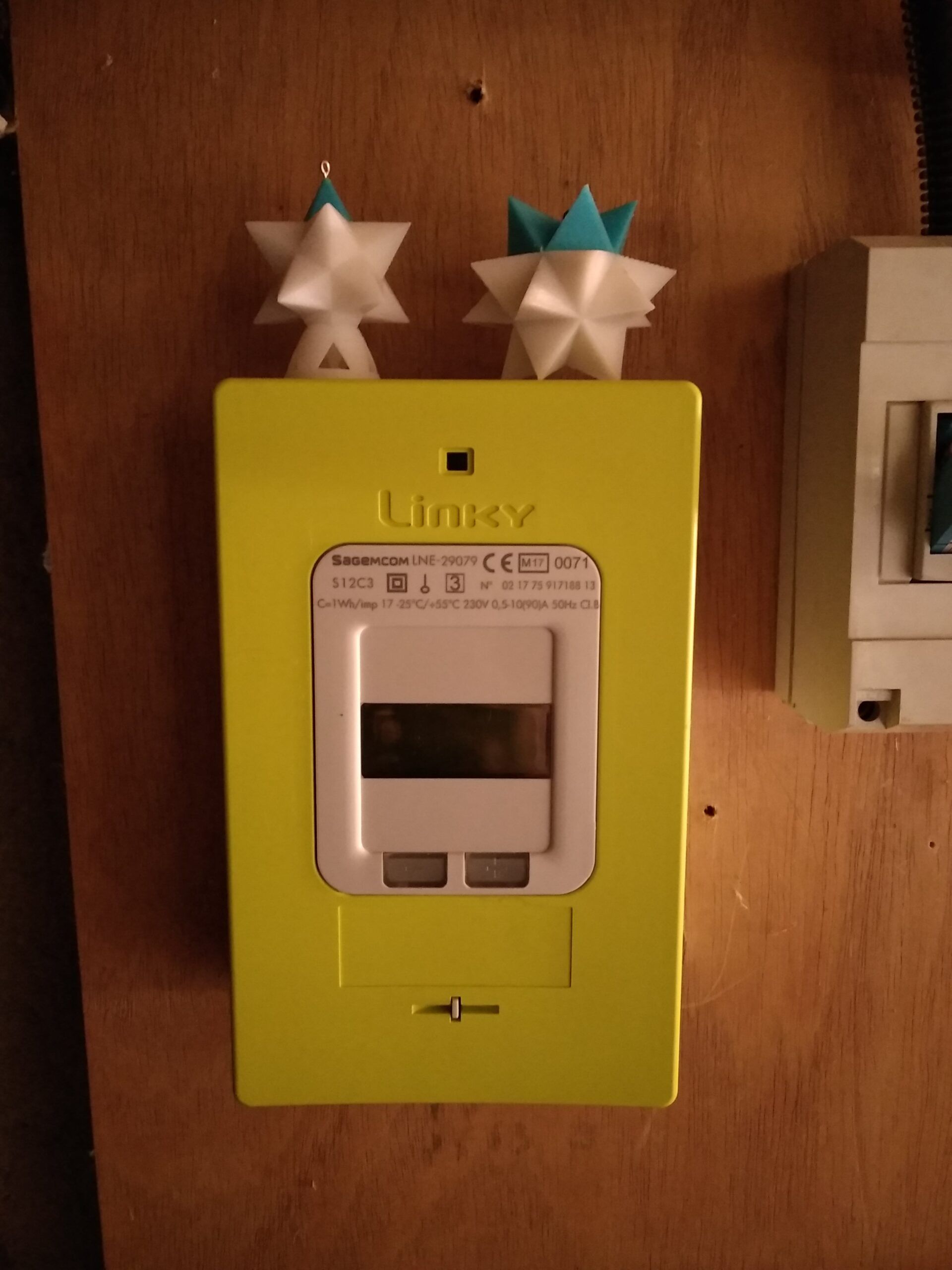 Duo compteur électrique. Se pose sur le compteur électrique ou sur le tableau électrique général de la maison. Les formes doivent être idéalement au même niveau pour résonner au maximum